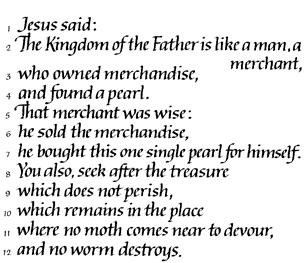 S everal logia, including this one, appeal to the discrimination without which access to the Kingdom remains closed. It is indispensable to put to one side what is not if we want to discover what is. Wisdom carries this price; we cannot know Reality without becoming aware of that which we are, or in other words, without discovering our true identity. Now, we have seen in the commentary to the previous logion that nothing exists save Him and that I am not other than Him. The big fish (log. 8), the single pearl (log. 76), the single sheep (log. 107), the treasure (log. 109), have made necessary a choice which totally changes the behaviour of those concerned. From the moment of this choice, life has changed. The inalterable treasure is that which culminates in the evidence that other than Him does not exist, it is the Living issue of the Living (log.111), invulnerable, immortal.