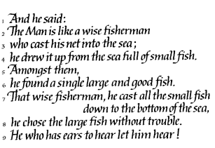What does the wise fisherman do who is here held out to us as an example? Having taken from his net a large and good fish from among a quantity of little fishes, he goes straight to the essential point: losing neither his time nor his energy in holding on to the little fish, he chooses the large fish without trouble.